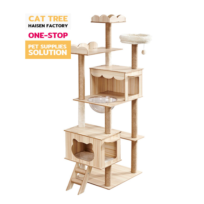 Cat Climbing Frame Tree Real Branch Enclosure Wooden House Cat Tree Cat Tree With Litter Box