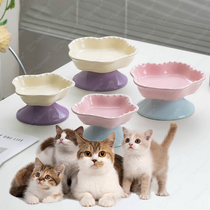 Cute Large-Diameter High-Foot Neck Guard to Prevent Tipping Over Slow Food Pet Cat Bowl