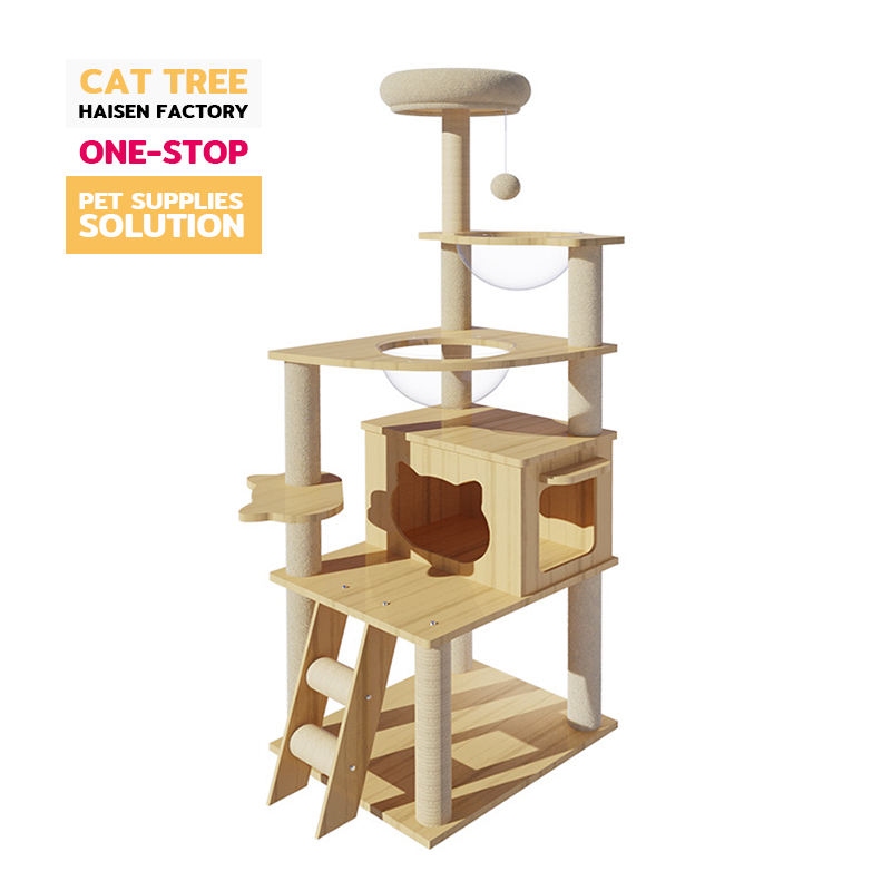 Haisen Custom Fashion Wooden House Cat Tree Platform Wooden Luxury Cat Trees for Big Cats