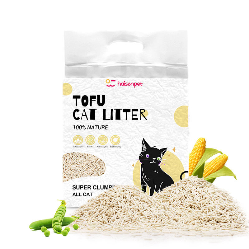 Haisen OEM Premium White Colour Plant Cat Sand Milk Scent 6l Eco Clean 2mm Stripe Shape Dust Free Clumping Tofu Cat Litter