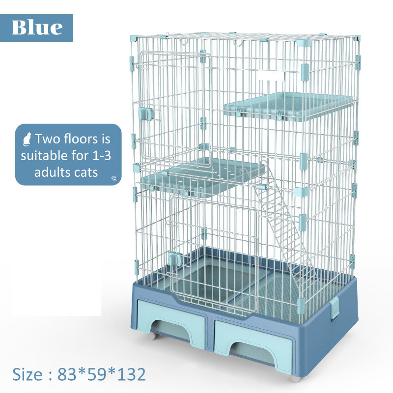 Wholesale 3-Layer Metal Large Universal Wheel Removable Stainless Steel Wire Cat House Cage With Litter Box and Storage Box